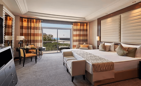 The luxurious and stylishly designed rooms of Calista Luxury Resort Hotel offer a dazzling stay experience with their commanding views of golf courses and landscapes. You can discover the flavors of world cuisine in the hotel’s carefully crafted restaurants and pamper your body and soul in the spa center for a stress-free holiday.