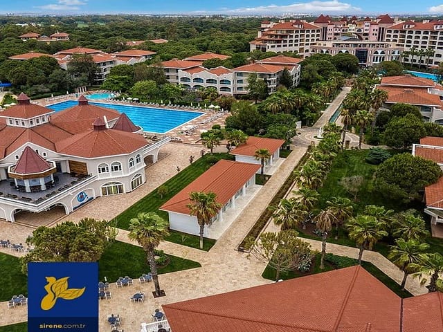 Located in the prestigious holiday region of Belek, Antalya, Sirene Belek Hotel offers guests a luxurious, comfortable, and tranquil holiday experience. With extensive facilities, elegant accommodation options, and top-notch service quality, this hotel meets the expectations of guests of all ages.
